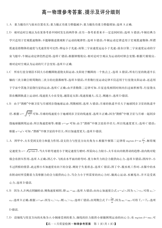 物理答案-高一4月质量检测(人教、教科通用).pdf