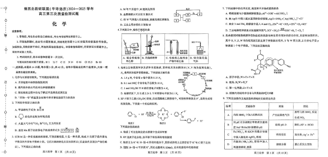河南省豫西北教研联盟(许平洛济)2025届高三下学期第三次质量检测化学试卷+答案.pdf
