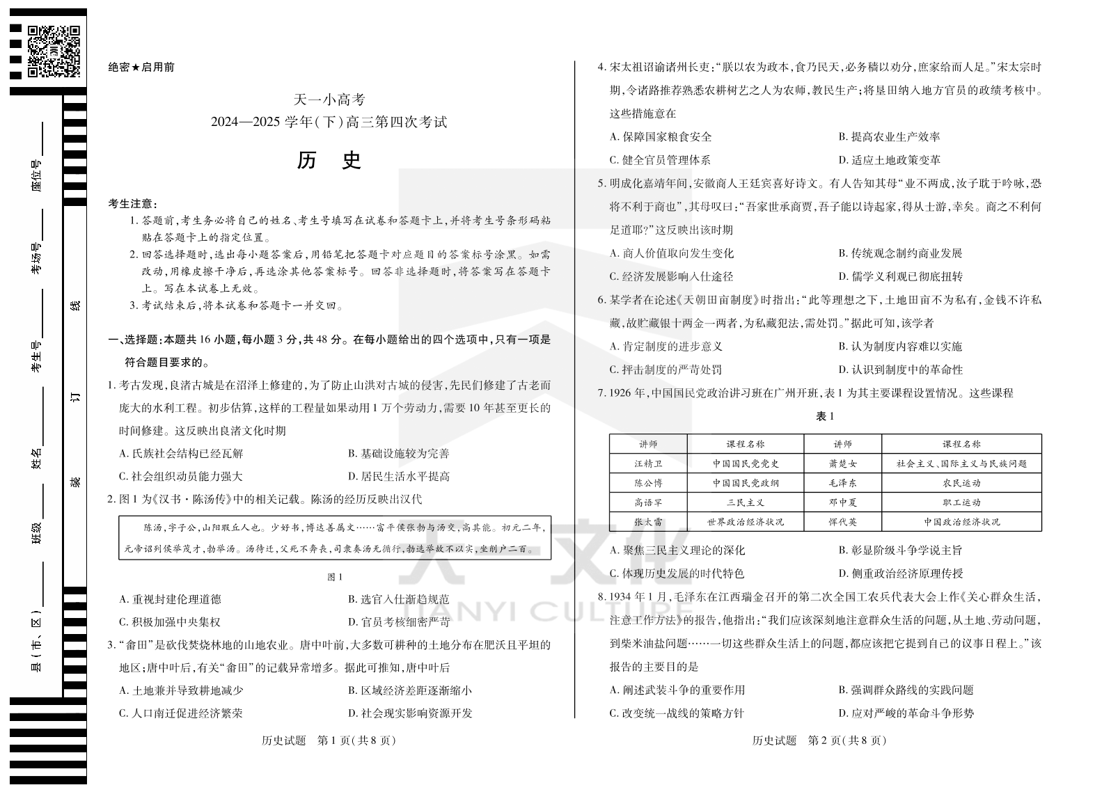 【历史】天一大联考·河南省天一小高考2024-2025学年(下)高三第四次考试.pdf