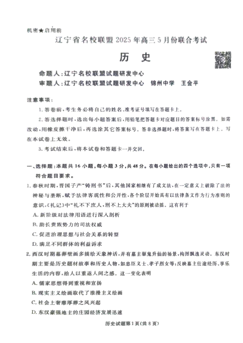 【历史】辽宁名校联盟2025年高三5月份联合考试.pdf