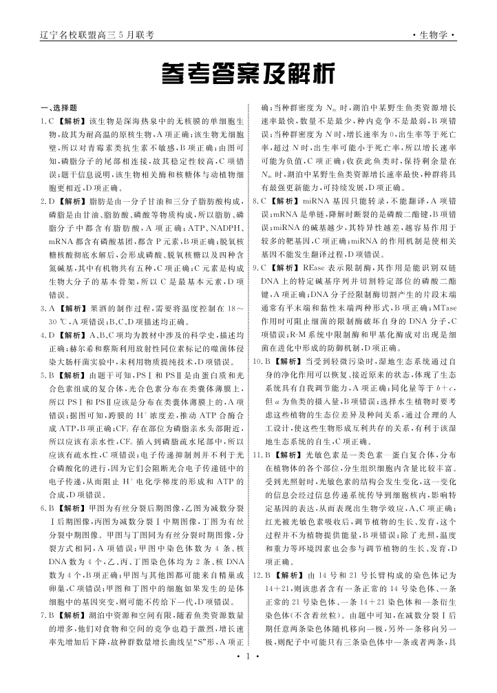 生物2025年辽宁高三5月联考答案.pdf