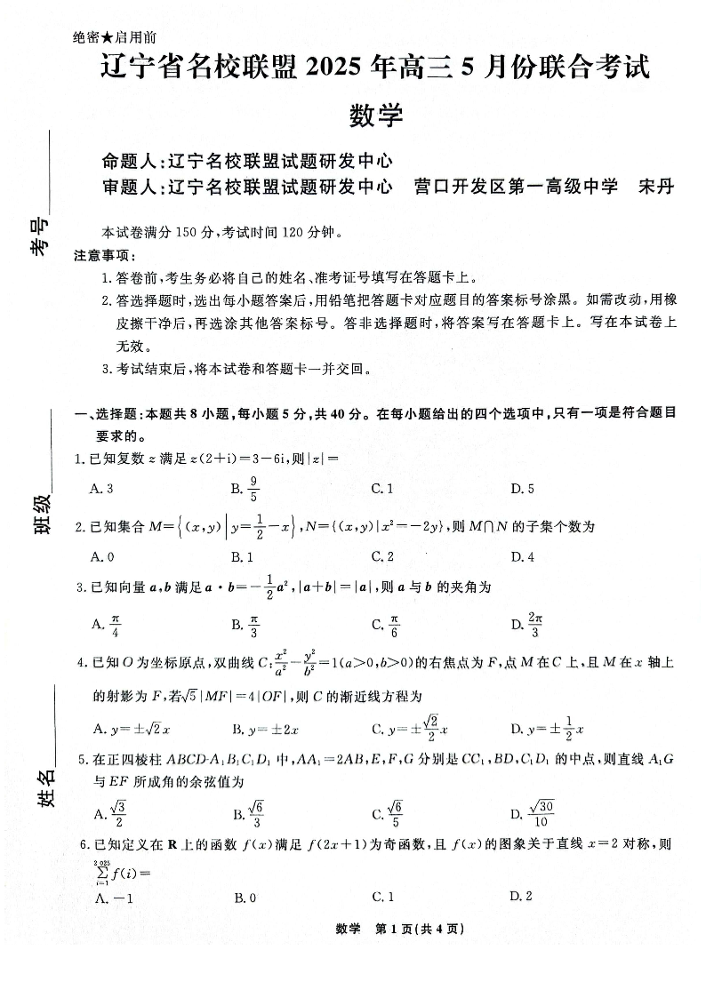 【数学】辽宁名校联盟2025年高三5月份联合考试.pdf