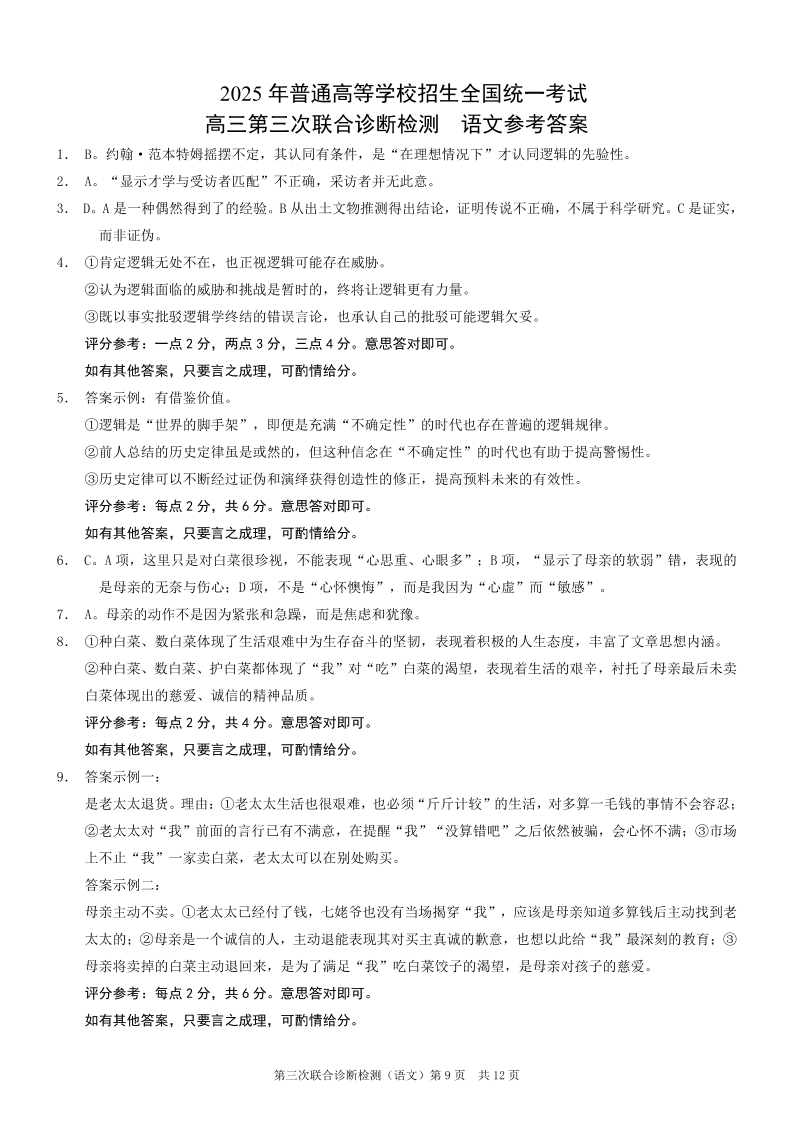 重庆市2025年高三第三次联合诊断检测 语文参考答案(康德卷).pdf