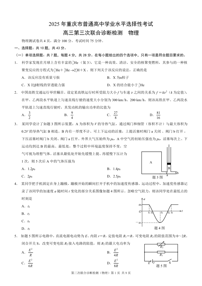 重庆市2025年高三第三次联合诊断检测 物理(康德卷).pdf