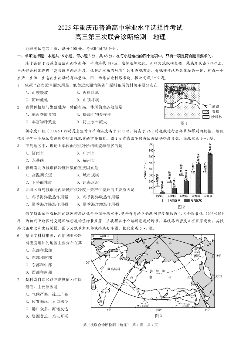 重庆市2025年高三第三次联合诊断检测 地理(康德卷).pdf
