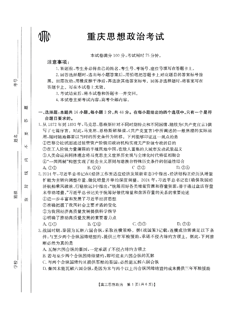 重庆市好教育联盟2025届高三5月联考 政治.pdf