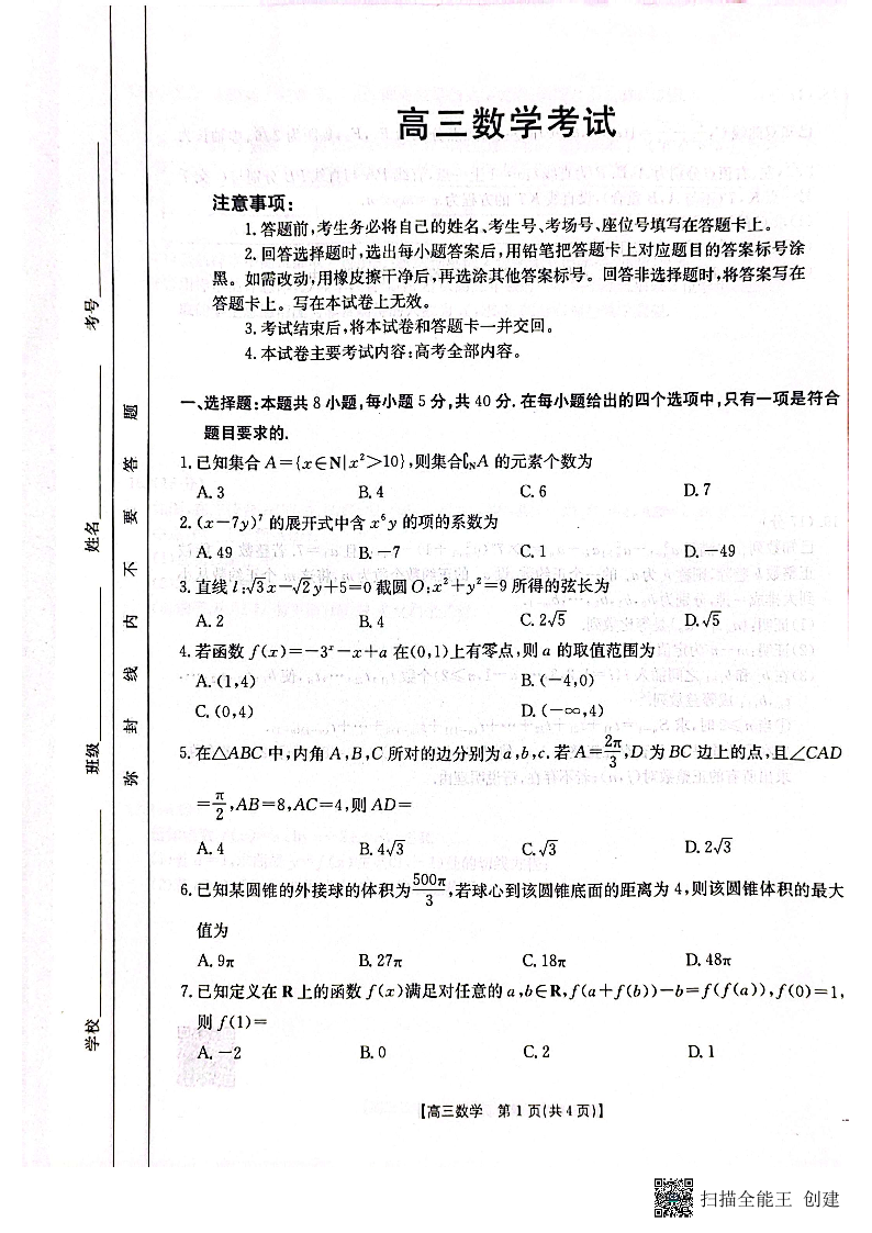 重庆市好教育联盟2025届高三5月联考 数学.pdf