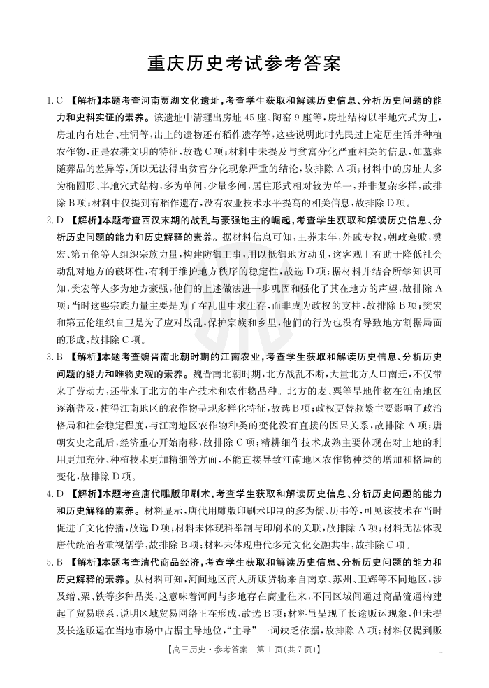 重庆市好教育联盟2025届高三5月联考 历史答案.pdf