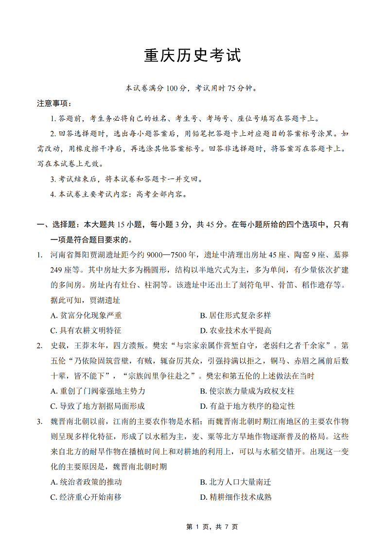 重庆市好教育联盟2025届高三5月联考 历史.pdf