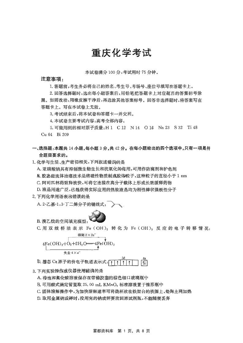 重庆市好教育联盟2025届高三5月联考 化学.pdf