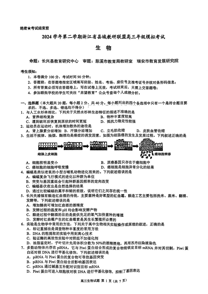 2025届浙江省县域教研联盟高三模拟生物试卷及答案.pdf