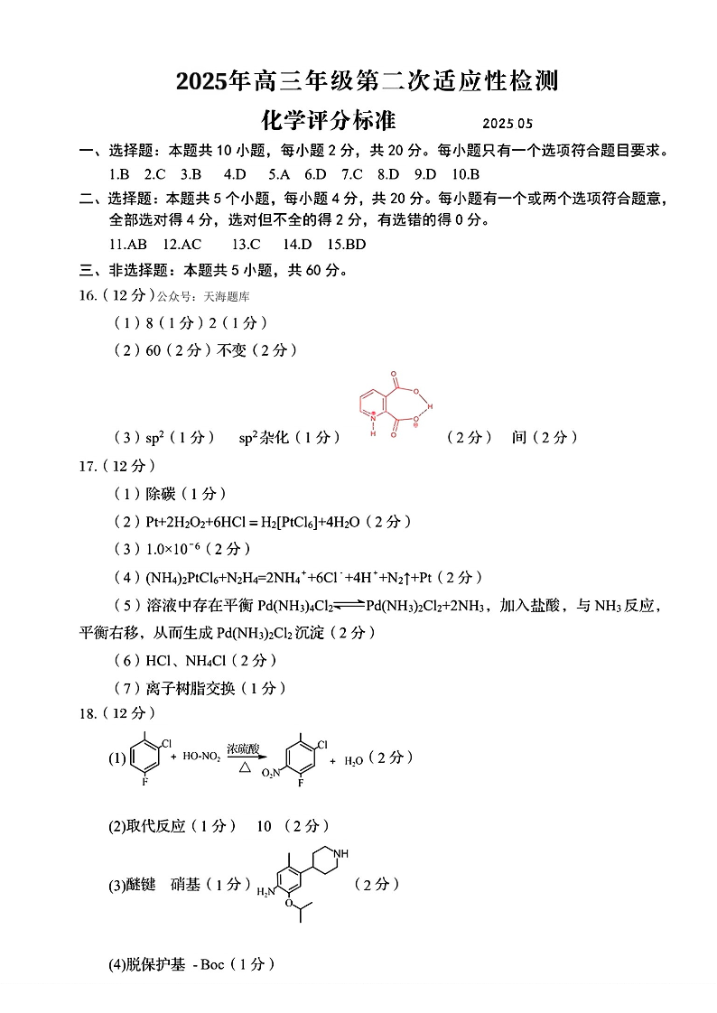 山东省青岛市 淄博市2025年高三年级第二次适应性检测 化学答案.pdf