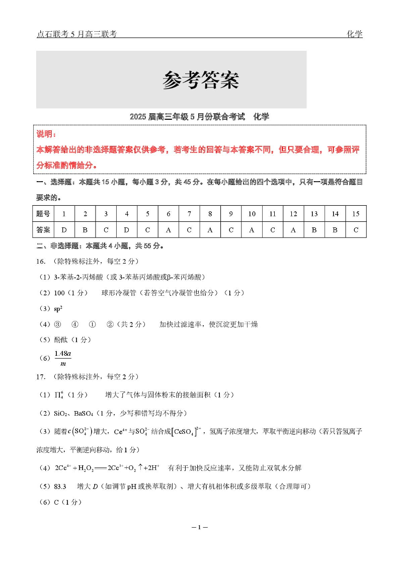 辽宁省点石联考2025届高三年级5月联合考试 化学答案.pdf
