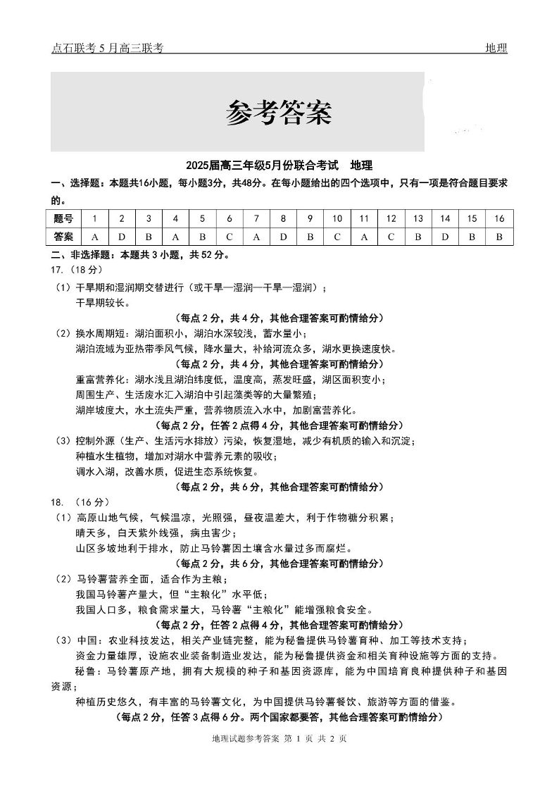 辽宁省点石联考2025届高三年级5月联合考试 地理答案.pdf