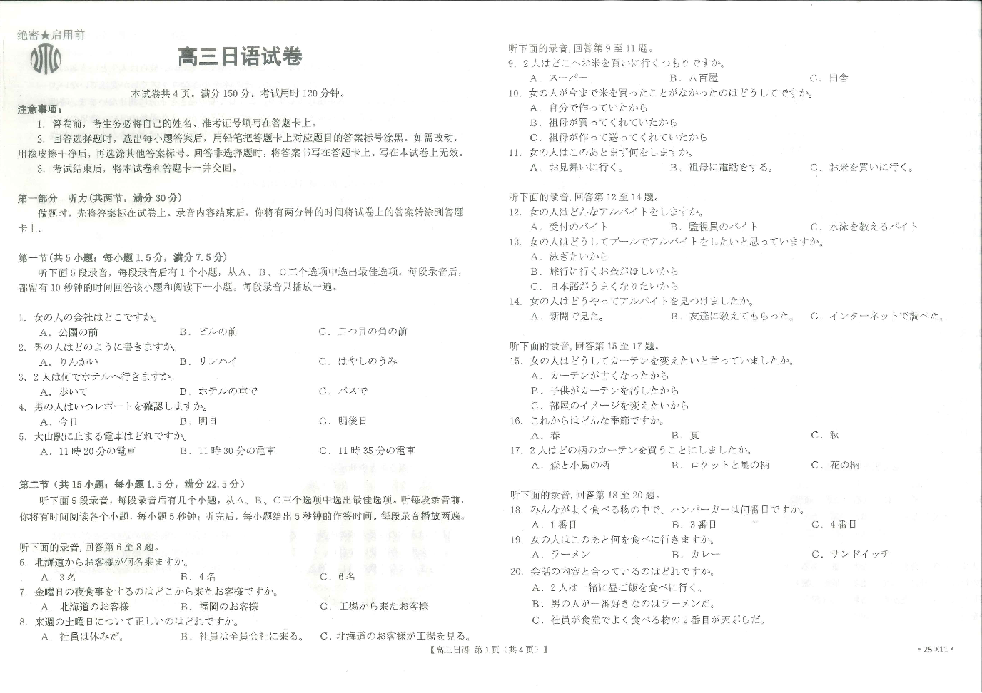 江西省三新协同教研共同体高三5月考试 日语.pdf