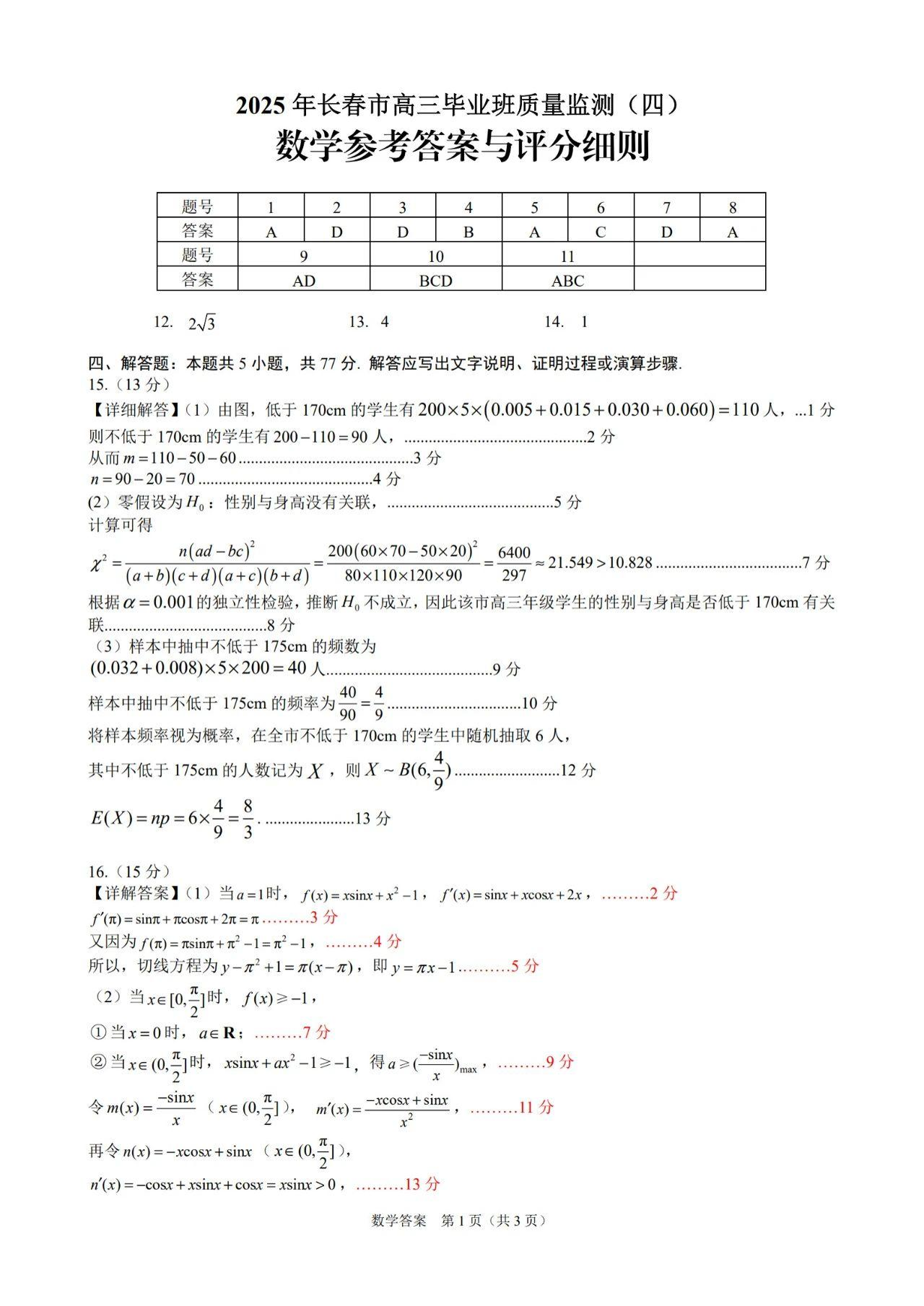 2025年长春四模数学答案.pdf