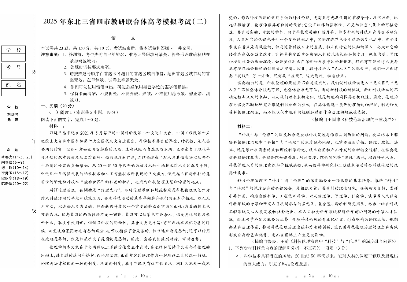 2025年东北三省四市教研联合体高考模拟考试(二)语文.pdf