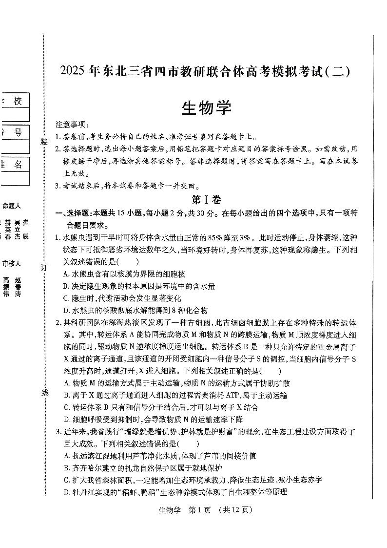 2025年东北三省四市教研联合体高考模拟考试(二)生物.pdf