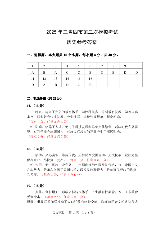 2025年东北三省四市教研联合体高考模拟考试(二)历史答案.pdf