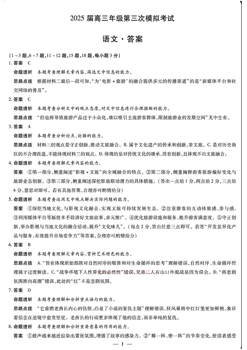 河南省2025届高三年级第三次模拟考试 语文答案.pdf