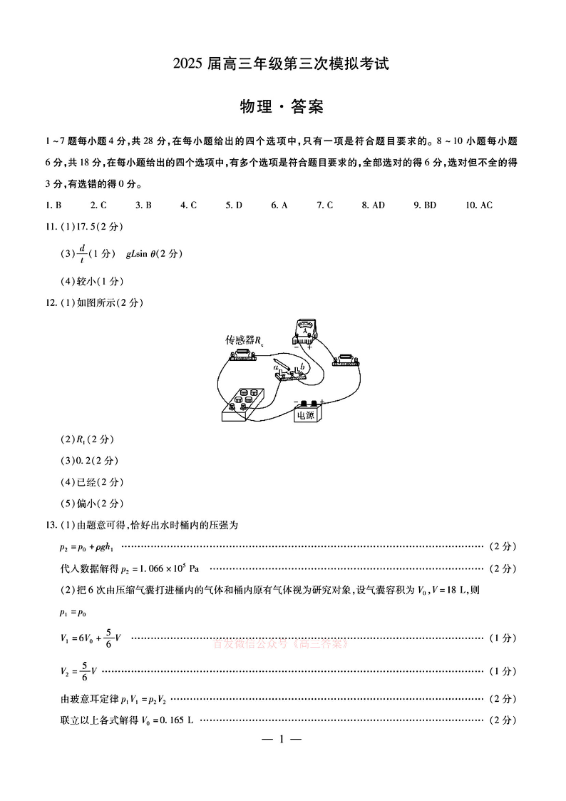 河南省2025届高三年级第三次模拟考试 物理答案.pdf