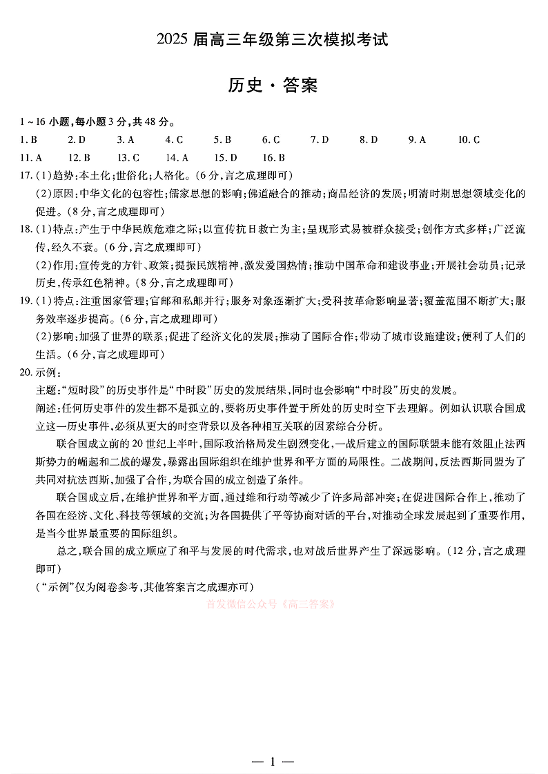 河南省2025届高三年级第三次模拟考试 历史答案.pdf