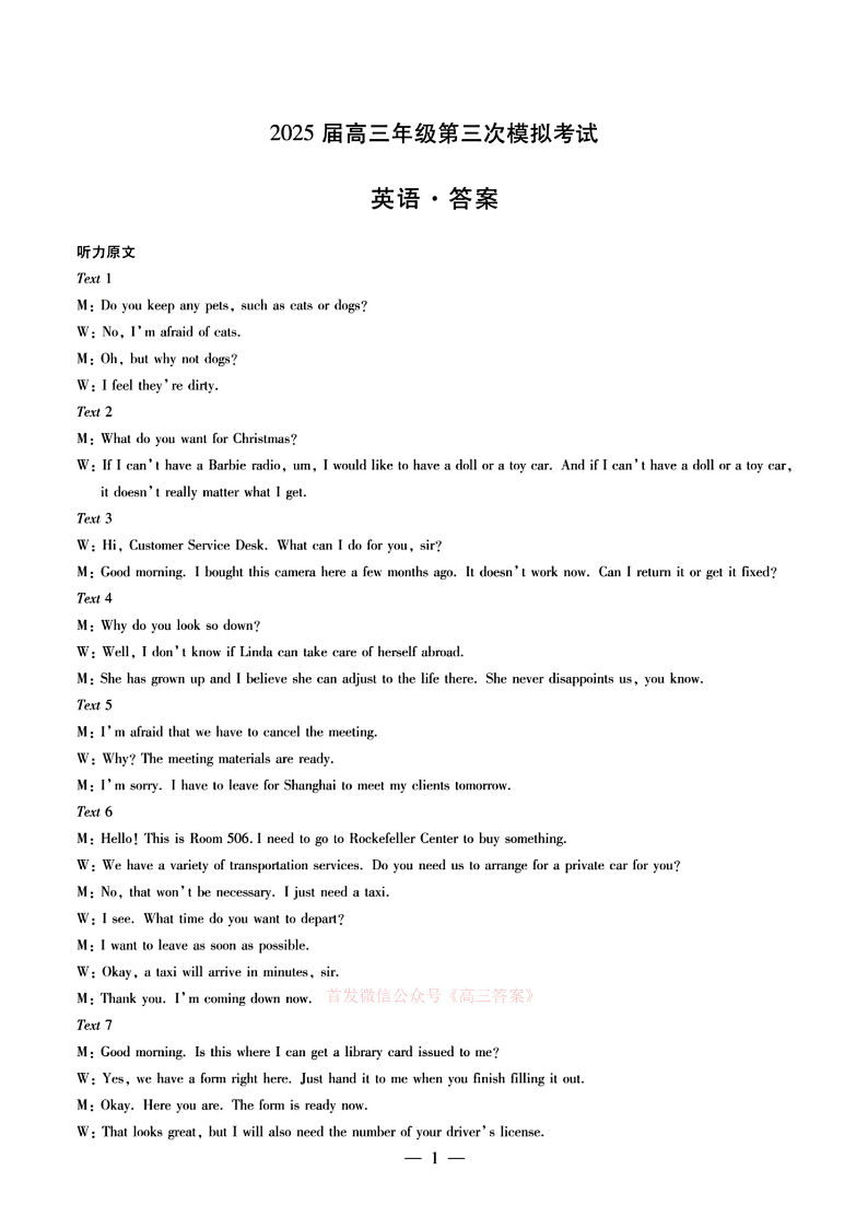 河南省2025届高三年级第三次模拟考试 英语答案.pdf