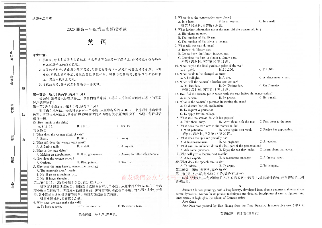 河南省2025届高三年级第三次模拟考试 英语.pdf