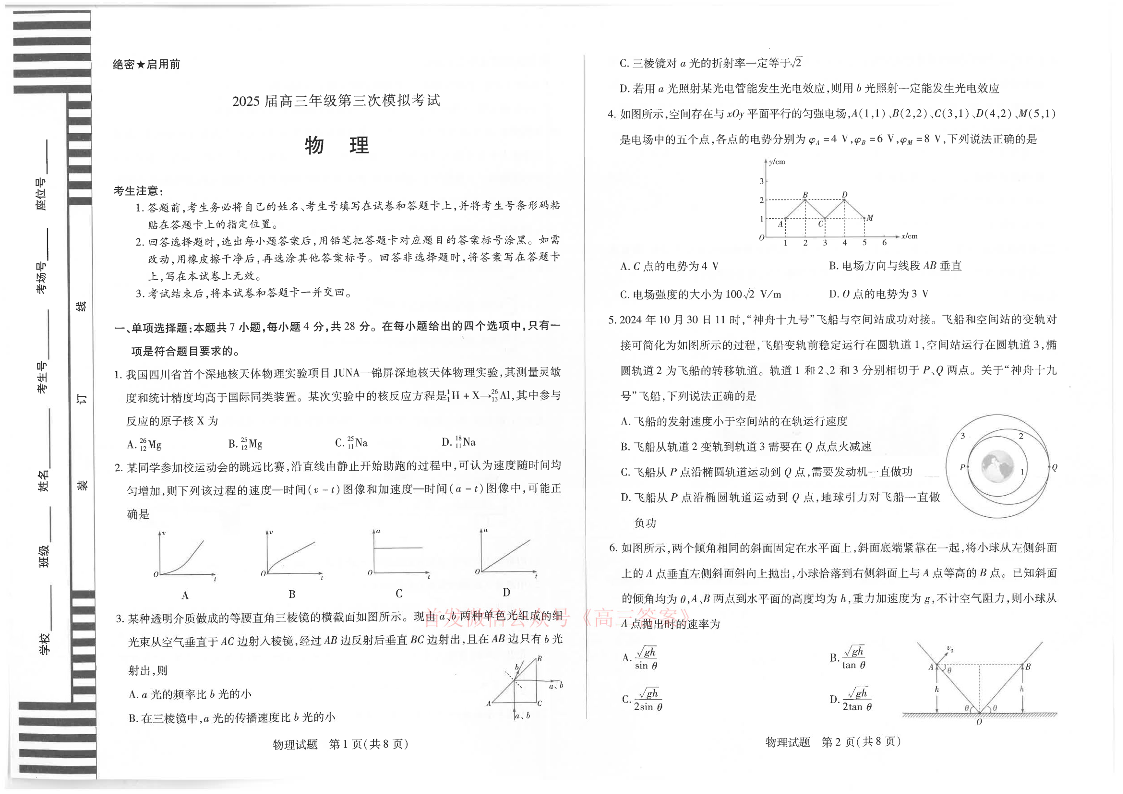 河南省2025届高三年级第三次模拟考试 物理.pdf