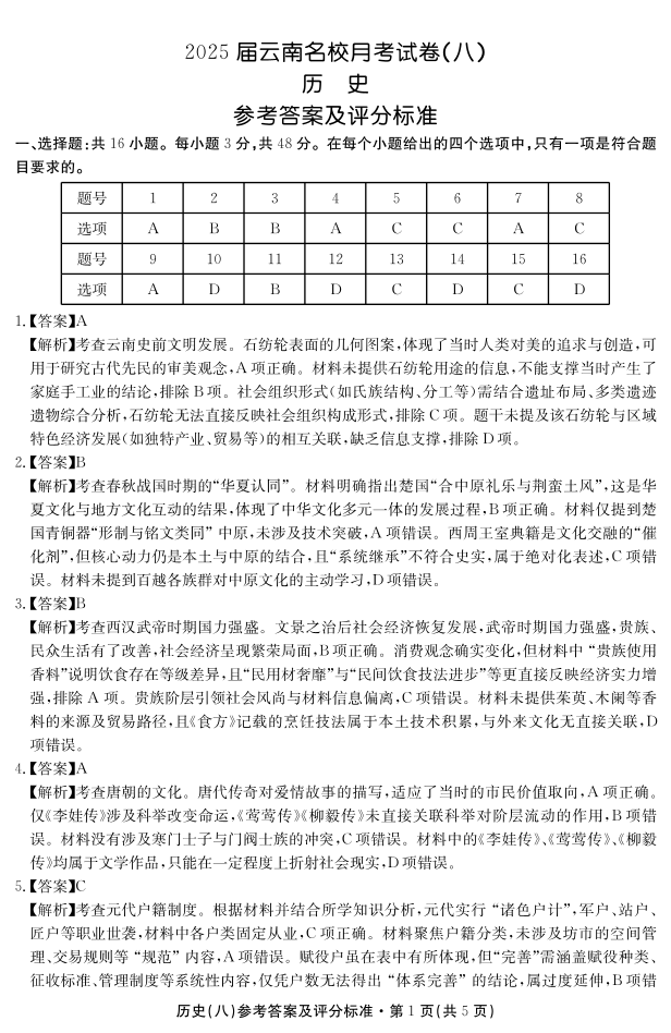 2025届云南名校月考(八)历史答案.pdf