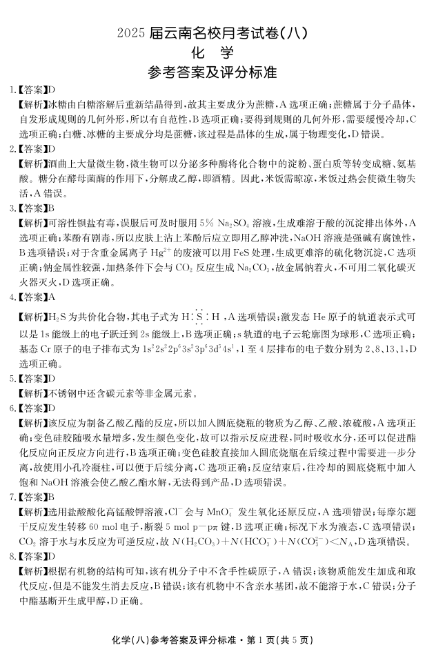 2025届云南名校月考(八)化学答案.pdf