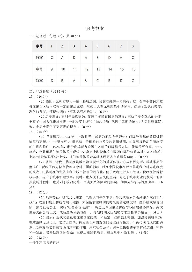 山西省晋中市2025年5月高考适应训练考试 历史答案.pdf