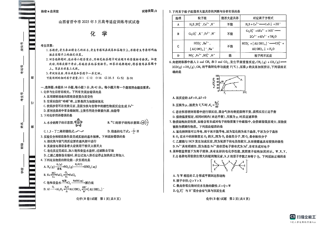 山西省晋中市2025年5月高考适应训练考试 化学.pdf