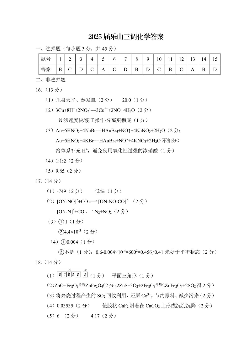 乐山市高中2025届第三次调查研究考试 化学答案.pdf