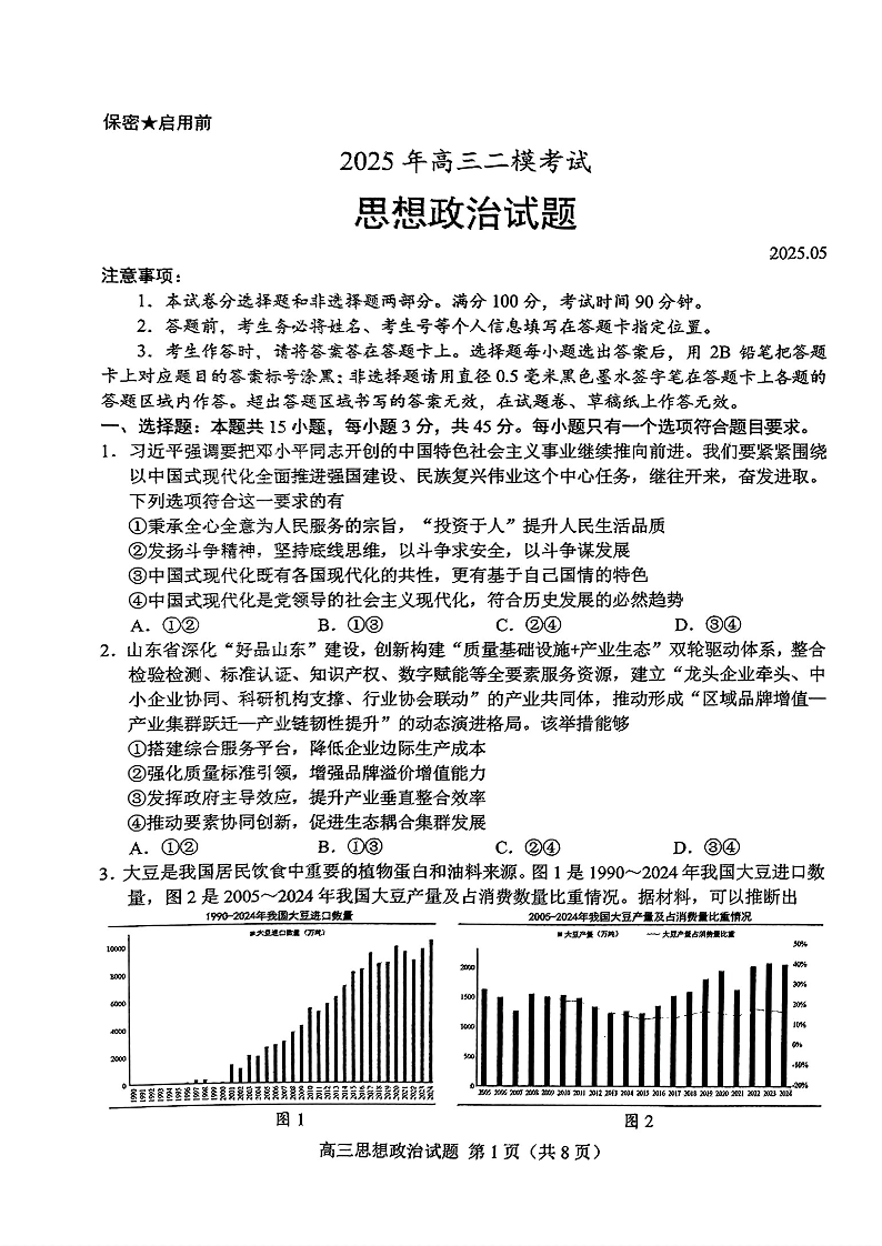 山东省菏泽市2025年高三二模考试 政治.pdf