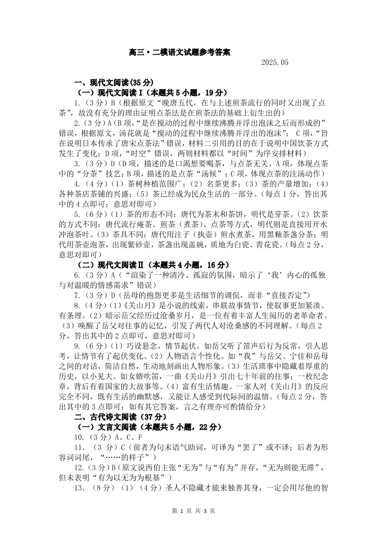 山东省菏泽市2025年高三二模考试 语文答案.pdf