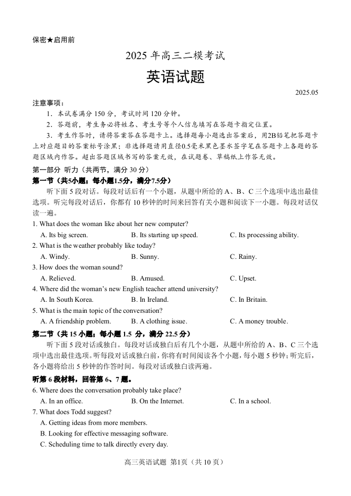 山东省菏泽市2025年高三二模考试 英语.pdf