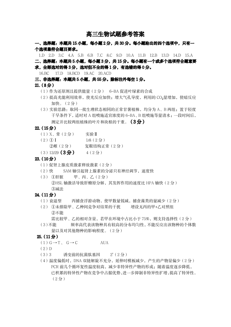 山东省菏泽市2025年高三二模考试 生物答案.pdf