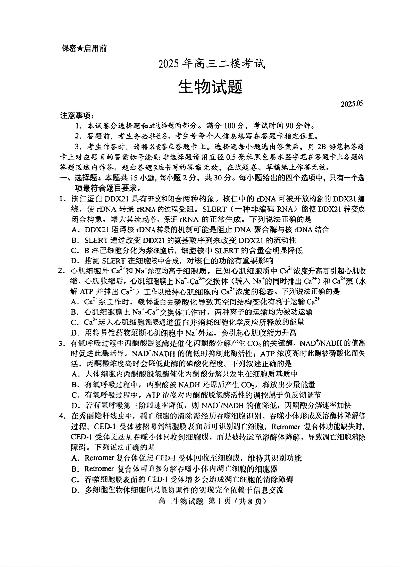 山东省菏泽市2025年高三二模考试 生物.pdf