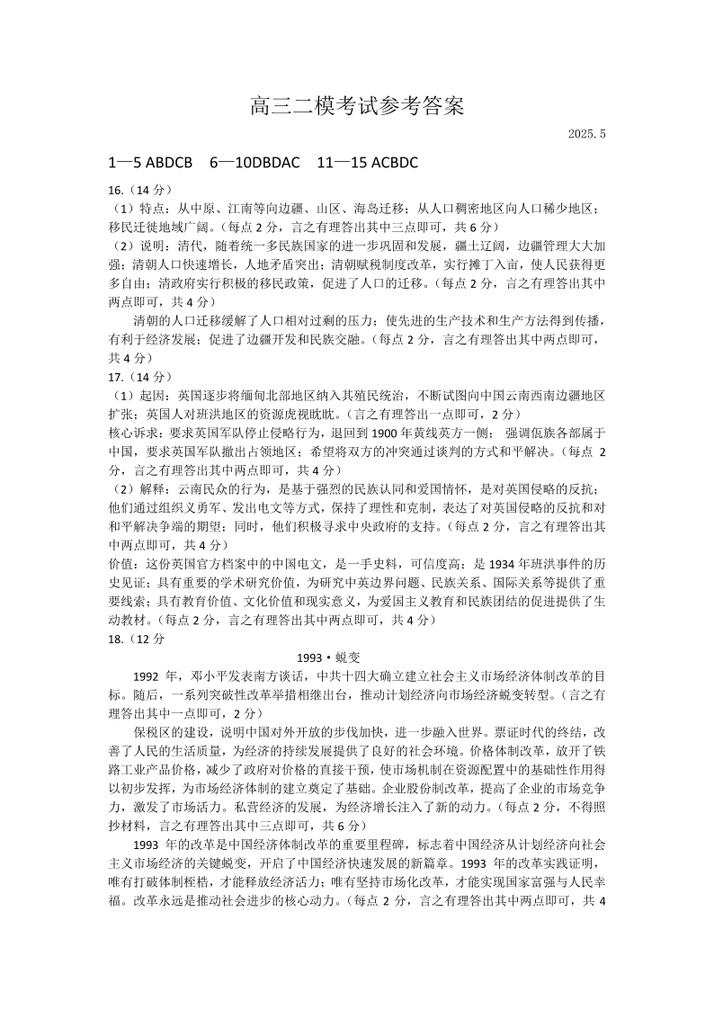 山东省菏泽市2025年高三二模考试 历史答案.pdf