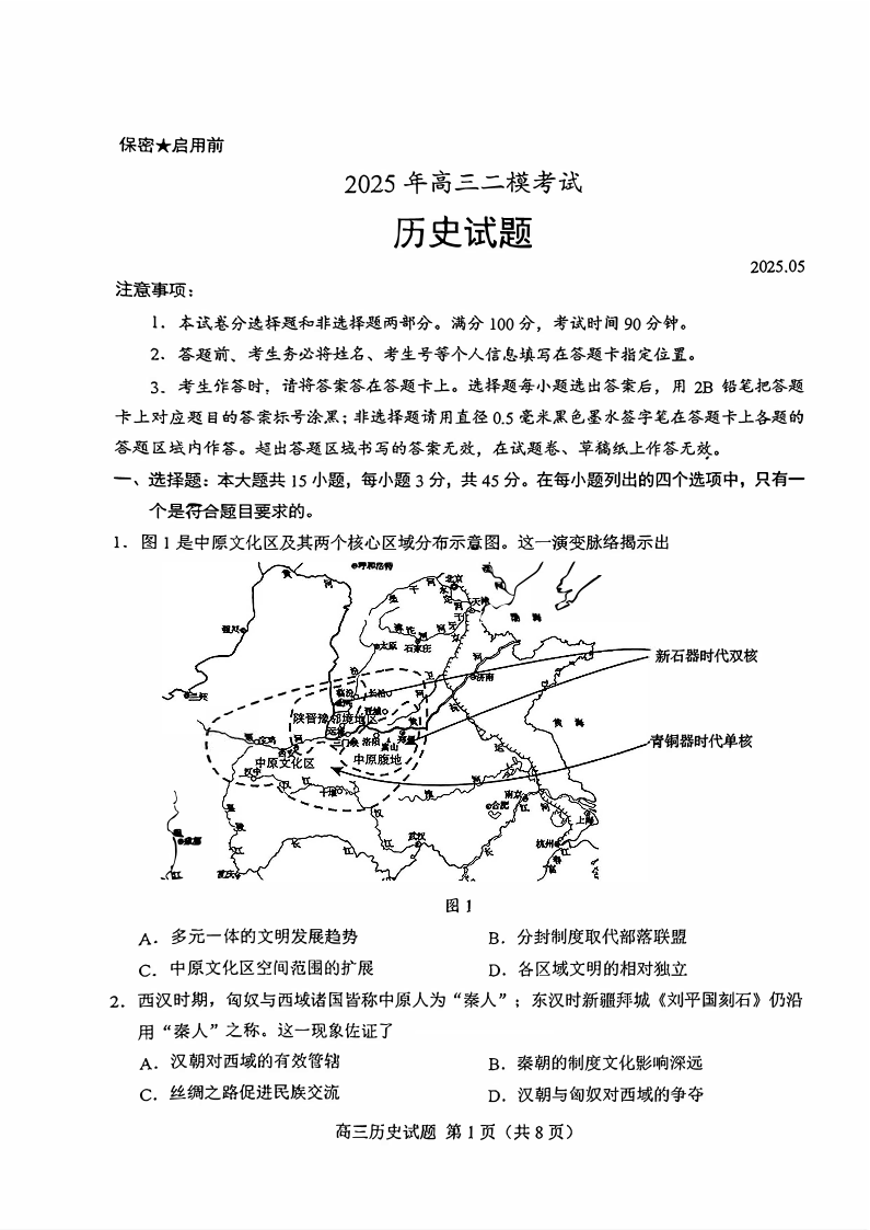 山东省菏泽市2025年高三二模考试 历史.pdf