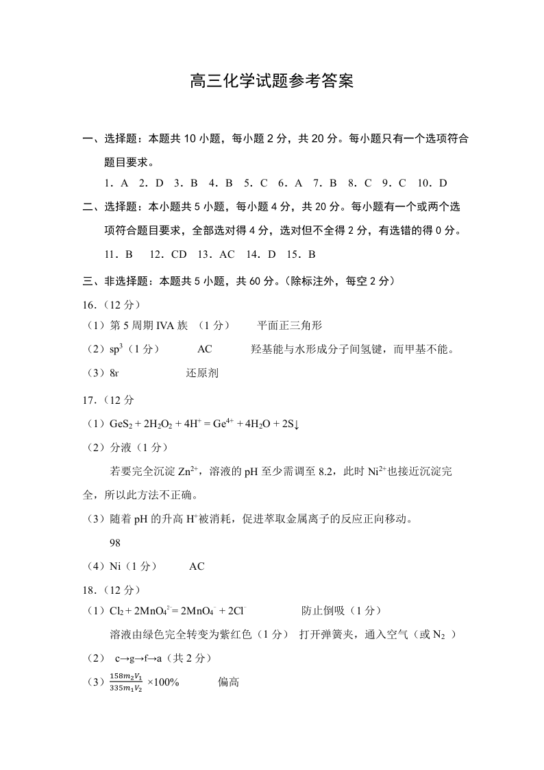 山东省菏泽市2025年高三二模考试 化学答案.pdf