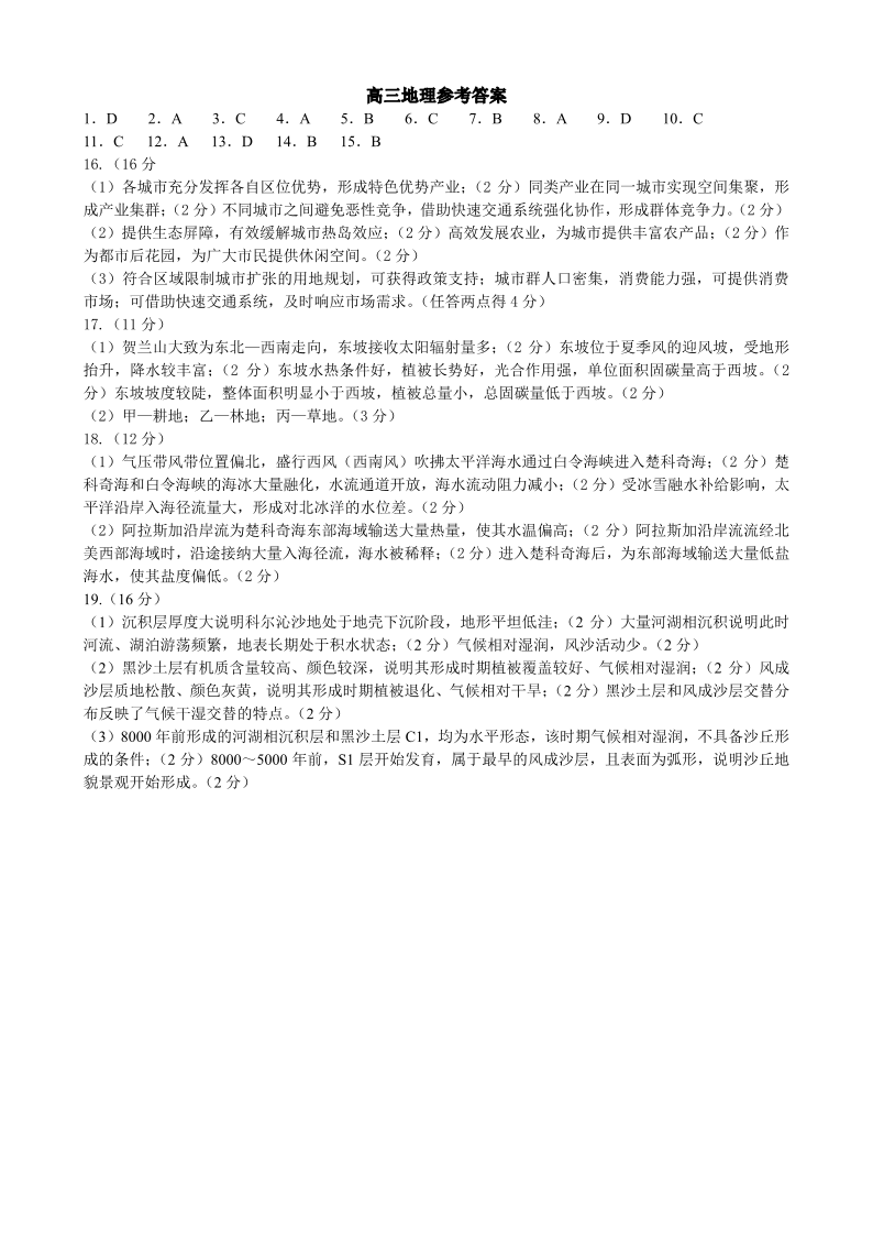 山东省菏泽市2025年高三二模考试 地理答案.pdf