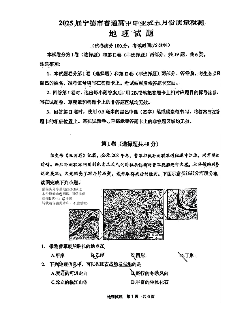 宁德市2025届普通高中毕业班五月质量检测 地理(含答案).pdf
