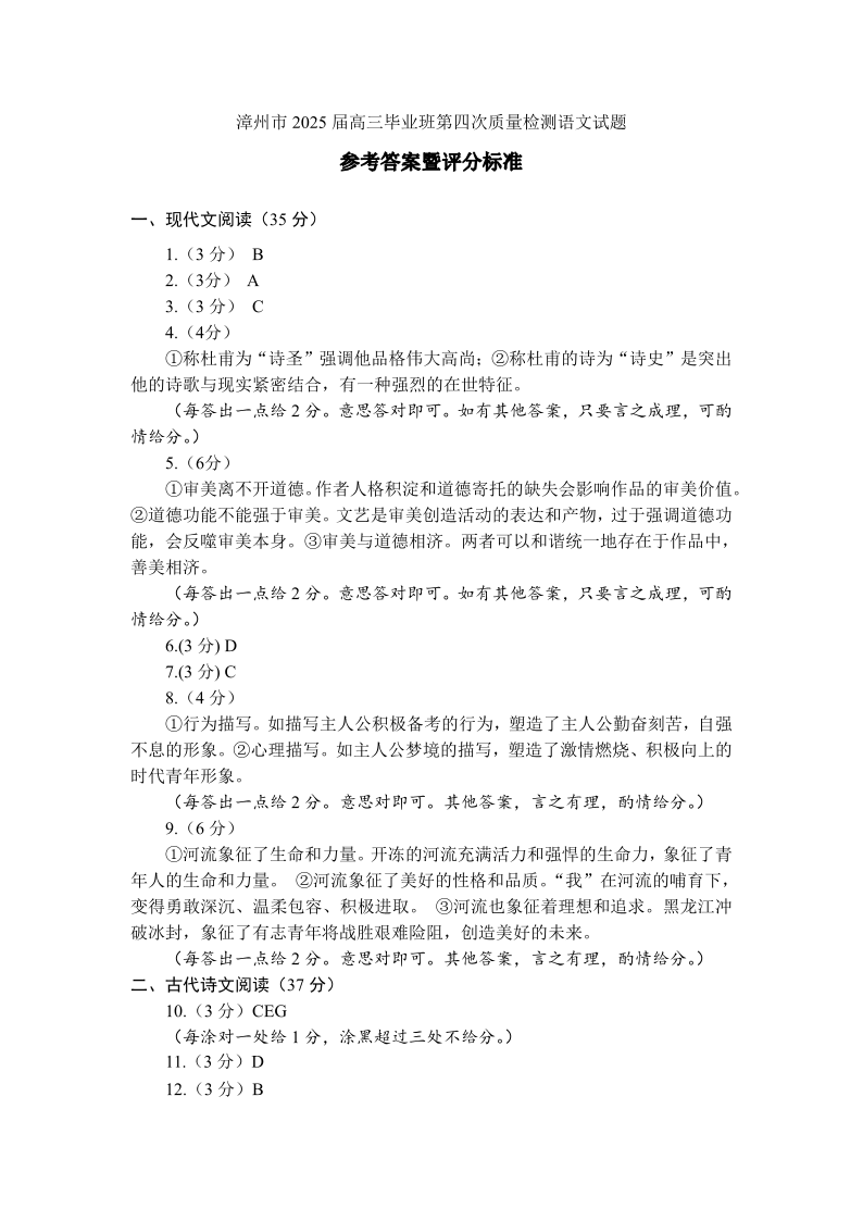 漳州市2025届高三毕业班第四次教学质量检测 语文答案.pdf
