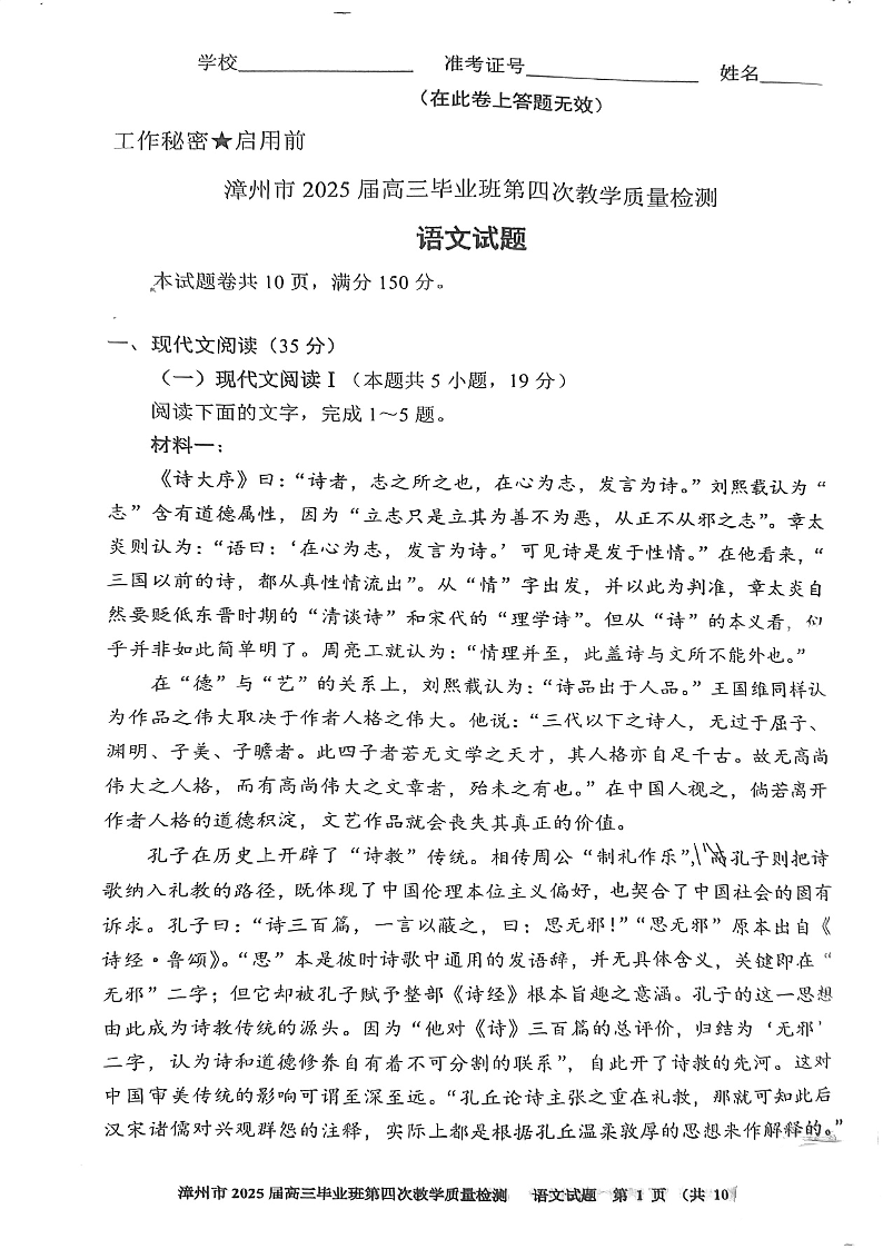 漳州市2025届高三毕业班第四次教学质量检测 语文.pdf