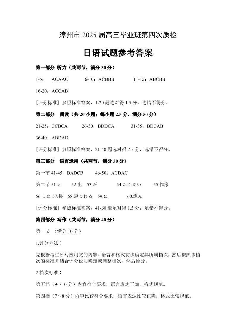 漳州市2025届高三毕业班第四次教学质量检测 日语答案.pdf