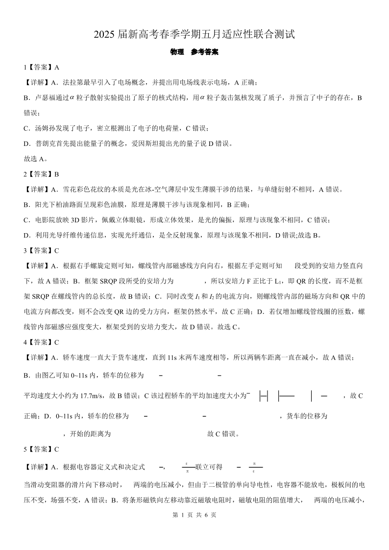 邕衡教育·广西2025年5月高三模拟考 物理答案.pdf