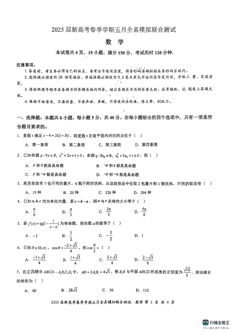 邕衡教育·广西2025年5月高三模拟考 数学.pdf