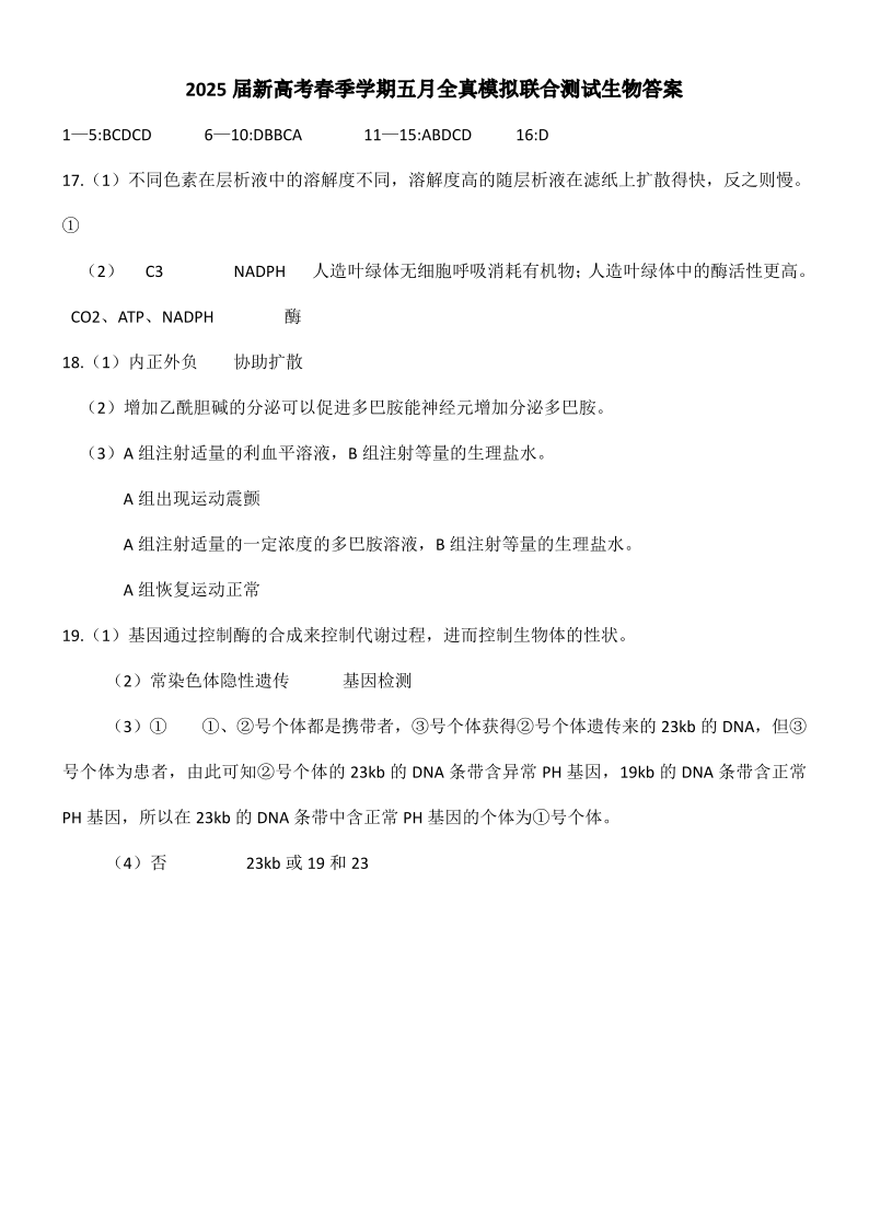邕衡教育·广西2025年5月高三模拟考 生物答案.pdf